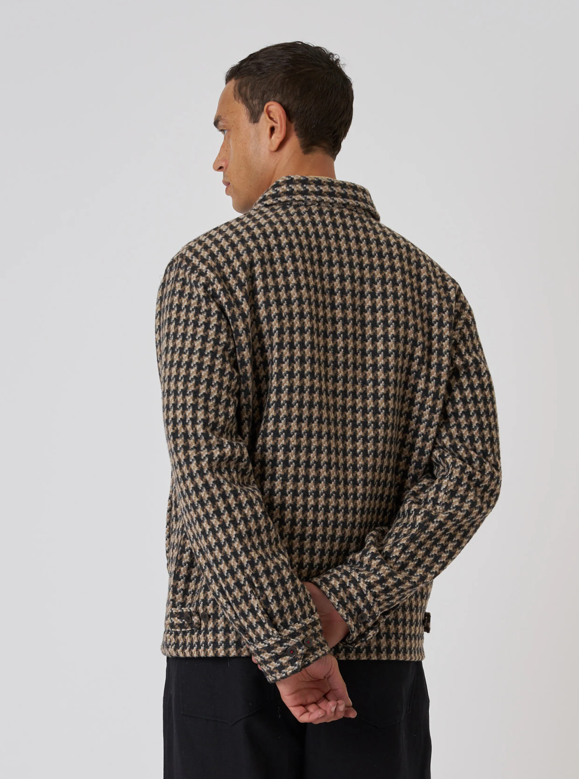 A classic-fit double zip-front jacket with a simple collar, button-adjustable cuffs and waist tabs, and two simple welt hand pockets. Similar to our Rose Bowl jacket, but with a smaller collar and a more square fit.